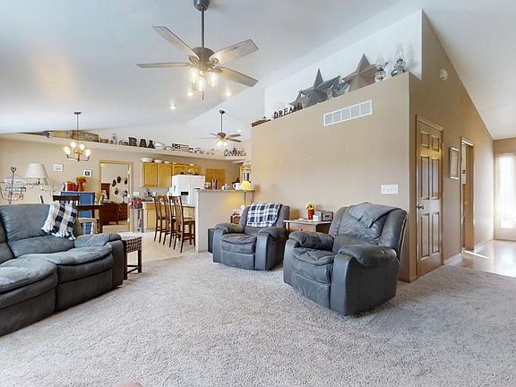 Peacefully sitting back on a large lot in Mahomet's established Timber Ridge subdivision you'll find this 6 bedroom, 3.5 bath sprawling ranch with over 2500 sq feet of living space! Follow the front path up to the inviting porch and inside where you're greeted with vaulted ceilings, warm tones and beautiful natural light in both the spacious living room and open kitchen. The split bedroom design begins with the primary bedroom just off the kitchen, featuring a private full bath. Completing the main floor are three additional bedrooms which share a hallway bath plus a separate laundry room and guest half bath. You'll love all the extra space found in the finished basement starting in the large family room highlighted by brand new flooring and hand painted brick accents. The updated flooring continues into the two bedrooms. Retreat outside where your secluded paradise awaits complete with an incredible grilling area, large patio and shed in the fenced backyard. Find fantastic storage solutions in the attached garage with room to fit 5 cars, including an extra deep stall (12x12x50) with an oversized door. Schedule your private showing of this beauty today!