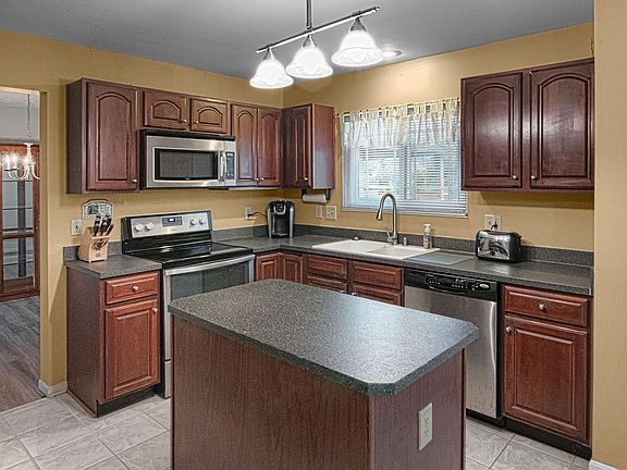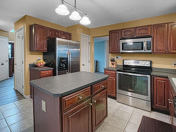 - Kitchen Features: Eat-In, Pantry, Island, Tile Floor