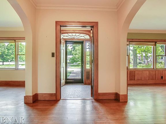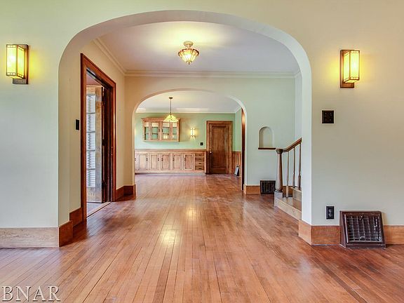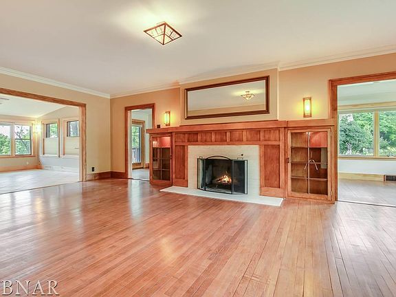 There is a natural beauty to this Craftsman style home. Hardwood throughout. Totally updated. 4 Bedrooms each with their own full bath. Bedroom w/Accessible bath on 1st floor. Huge kitchen w/granite island, gas range, 2nd full convection oven, all GE smudge proof stainless appliances, wet bar, expansive eating area. Double entry way. Gorgeous dining room w/built sideboard & cabinets. You will love the large living rm w/fireplace & grand windows. There is even a 1st flr family room w/half bath. Large mudroom with 3 closets and custom lockers. This is a wonderful family home so close to grade school, jr high, & high school. 1 Car attached garage & 2 car detached garage w/off street parking as well. Private deck in back. Ask about the neighborhood gathering table you can host if you like.