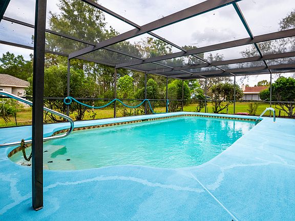 3/3/2 pool This pool home sits on 1/2 acre with 3 bedrooms, 3 bathrooms and a 2 car garage. This cute home is move in ready. Enter your tiled foyer and you are greeted by an open concept living room and dining room combination with vaulted ceilings complimented by the slate stone fireplace surround and absolutely beautiful, well maintained hard wood floors. The kitchen features a small breakfast bar, new dishwasher, and a large horizontal sliding serving window that opens into the den/Florida room. The kitchen has overhead lighting and features tons of storage. This block home has two master suites and a guest room with separate hall bathroom. The first master suite is located just beyond the living room. It features a large walk in closet with vented wire shelving for added storage. The attached master bath has ceramic tile flooring, vanity with sink, exhaust fan and tub/shower combo with sliding glass shower doors. The second master is located past the Florida room and it features carpeted flooring, walk in closet and attached bath. The attached bath has a walk in shower stall, vanity with sink and tiled flooring. The 3rd bedroom is just past the dining room. It features two large closets a linen closet and carpeted flooring. The guest bathroom has a vanity with sink and tub/shower combination with ceramic tile floors. This home has a 14x26 in-ground pool with a large screened lanai. New roof installed in 2016, driveway, home, and pool deck painted in 2020. Attic insulation removed and attic newly insulated 2020 and so much more. Must see this one today. It wont last!