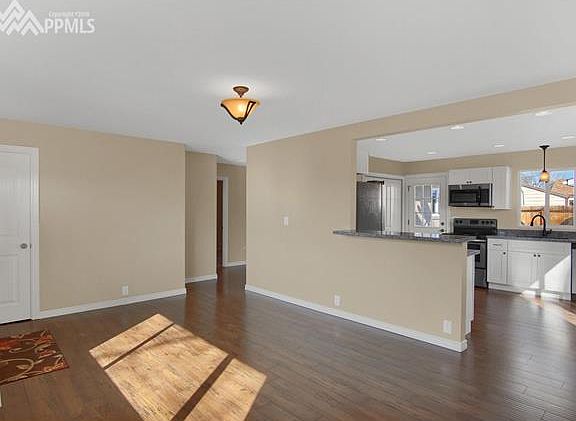 Remodeled ranch-style home with three bedrooms, one bath, and a double-car detached garage with a concrete driveway in Stratton Meadows. Move-in ready, you will be greeting with the fresh smell of everything new??? paint, flooring, appliances, countertops, cabinetry, and fixtures. Only minutes from Fort Carson, the World Arena, shopping, plus easy access to I-25. Will this be your new home? Don't wait if you think it might be!