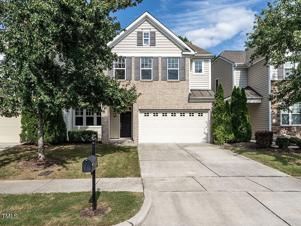 Delightful, semi-detached townhome in convenient Morrisville location! Fresh & sparkly for new owners - newer LVP flooring (2023) on main level, new carpet (2024) upstairs and lots of fresh interior paint. Kitchen has granite counters and stainless appliances & opens to the Family room with a vaulted ceiling and cozy fireplace. Primary Suite has a cathedral ceiling, walk in closet & en suite bathroom with dual vanity and separate tub & shower. Water heater replaced in 2022. Enjoy the privacy of the back patio, overlooking a wooded buffer. HOA dues include access to Town Hall Commons Pool, clubhouse & playground! Steps away from trail connector to Town of Cary Indian Creek Greenway, which also goes to the Pool / Clubhouse!
