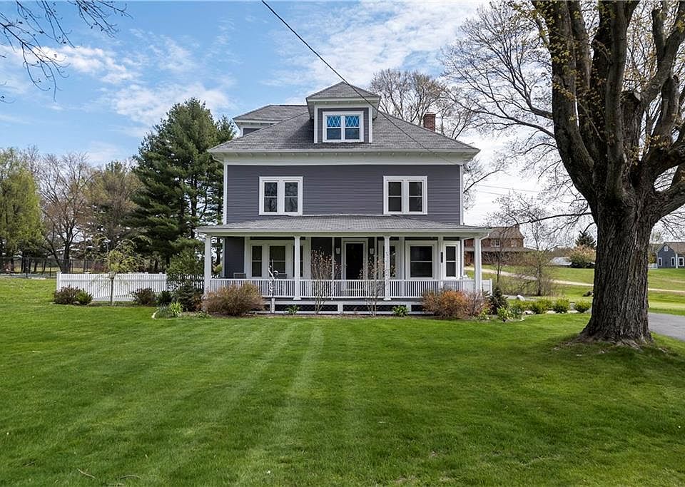 Welcome Home! This gorgeous farmhouse has old world charm & has been beautifully renovated. Granite/stainless kitchen with island, pantry and butler's pantry has plenty of storage and a winding back staircase to upstairs bedrooms. Dining room has gleaming hardwood floors, built-ins and opens to a 3 season porch and family room with fireplace (pellet insert) with custom surround, first floor bedroom could be in-law or office and has beautiful newer granite bathroom with large custom tiled shower with bench. The second floor also has beautiful southern pine wood floors, 4 additional bedrooms and a full bath. Huge walk up 3rd story attic offers potential as another master bedroom or playroom. Partially fenced yard is professionally landscaped and has hard scape patio to 2 car garage and shed. Exhale as you drive down Halladay Ave, just minutes to Historic Suffield Center, shopping, Springfield, Hartford. Newer roof, windows... see extensive improvement list attached! Don't miss this affordable opportunity to own a versatile property with soul & character.