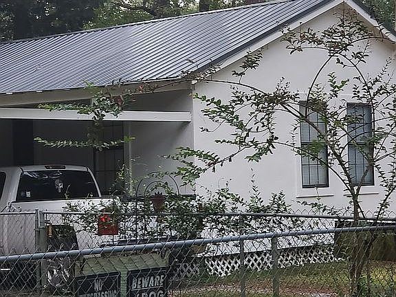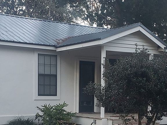 Small and cozy 3 bedroom. Large fenced in backyard, mature trees, with quiet neighbors. Brand new paint on the outside and a brand new tin roof. Outdoor living area and screened in back porch.