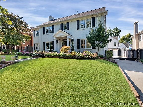 The House on Hazel is a beauty to behold. Updated from the bottom to the top, this house has everything you could want! Built in 1930 in the gorgeous Sunset Terrace, Hazel Boulevard is quite possibly the most idyllic street in Tulsa, Oklahoma. And this is likely the prettiest house on the street. Everything has been touched on this home, making it ready for its new owners. Step in and you will see the kitchen has been meticulously redone to maximize the space and storage, with new cabinetry, all new appliances including a Kitchenaid Monogram Range and Paramount Quartzite counters and backsplash. Along with all new electric and plumbing and an updated electrical panel, you will have peace of mind moving right in. All of the hardwood floors were refinished within the past year along with fresh paint throughout. With multiple flexible living spaces, there is so much space to stretch out, not to mention the huge living space and half bath in the basement, along with a laundry and workout room. Upstairs you will find 3 spacious bedrooms, all with en suite baths. The primary has its own living area, large bath, walk-in closet, with stackable washer/dryer up! The lanai doors open up completely to the stunning outdoor kitchen and pool, with a new pool heater. The overhead heaters on the patio make for a perfect setting for these cool fall nights to come. Heat up the hot tub that you can use year round. Walk across the yard and enter off the side of the garage to a half bath for the pool and up the stairs is a huge fully finished garage apartment. Perfect for guests, an office, or as an in law suite! The 2 car garage is also well insulated with a storage closet as well.
