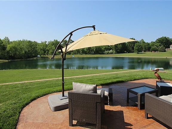 STUNNING LAKE VIEWS from nearly every room! Fall in love with this custom built 4 bedroom / 3.5 bathroom Ranch home with 3,388 spacious finished square feet. Real hardwood flooring, soaring ceilings, built-ins, gas fireplace, and custom trimmed 9' tall windows overlooking the lake make this living room a space for everyone to enjoy. The Chef's kitchen will inspire culinary creations with the custom oversized island, built-in appliances w/ gas range, granite countertops / tile backsplash, a hidden walk-in pantry w/ excess shelving, and… LAKE VIEWS! The large primary suite offers tray ceilings, a private door to rear composite deck (w/ an electric retractable awning), double vanity, walk-in frameless tile shower w/ multiple shower heads, a dreamy walk-in closet, and… LAKE VIEWS!! The second main floor bedroom features glass french doors, a walk-in closet and an en suite full bathroom. The walkout finished basement includes an open concept family room with two defined spaces for entertainment. A custom wet bar, pool table, media / lounge area and… LAKE VIEWS! The lower level bedrooms each offer oversized walk-in closets and full size windows (one with… LAKE VIEWS!) Walk out to the Hot tub on an upgraded / extended stained patio area overlooking the 7 acre lake and treeline beyond. Home is equipped with sonos surround sound upstairs/downstairs patio and deck. Three car garage has an enamel epoxy floor & workbench / cabinets / shelving. House is equipped with an emergency generator outlet and tinted windows for efficiency. Sprinkler system throughout the professionally landscaped lawn. Buried invisible fence & whole home water softener also included. This upgraded custom built home is one of a kind for Warrensburg. Located in the award winning Cayhill subdivision with easy access to 13 and 50 Highway & Whiteman AFB. Call today to schedule a showing!