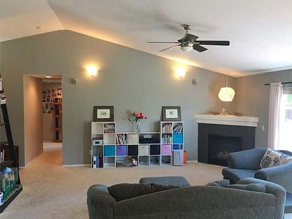 Well-kept family home on a quiet street at the end of a cul-de-sac on .3 acres. Large great room with vaulted ceilings includes kitchen/dining/living room/entry hall. Oversized living room windows look out over mountain views and welcome southern sunshine during winter months. Kitchen has tons of counter space and storage, as well as a breakfast bar. Master bedroom has full bathroom and large walk-in closet as well as large southern-facing window. Two additional bedrooms each have large closets. The spacious fully-fenced backyard with deck has room to entertain or enjoy a private evening with beautiful mountain views. Automatic sprinkler system on irrigation keeps the grass looking beautiful. No smoking. Tenant is responsible for lawn maintenance. Applicants are subject to credit, employment, and background checks. Pet fee $365/year for up to 3 pets max. 2 Car Garage w work space + additional off-street parking Washer/Dryer, Refrigerator, Dish washer, Stove/Oven included
