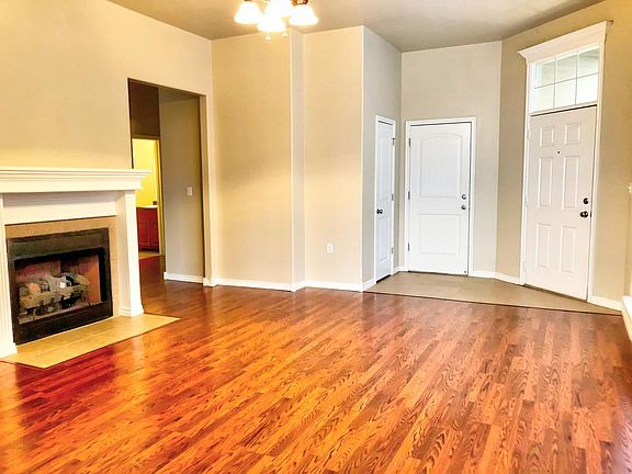 Stunning 2 Bed/2 Bath Home with Modern Amenities - Lawn Care Included! Experience luxury living in this gorgeous open-concept home featuring soaring 10' ceilings throughout! The bright, airy living room showcases beautiful laminate flooring, a cozy gas fireplace, and an oversized window flooding the space with natural light. The gourmet kitchen boasts custom cabinetry, elegant granite countertops, and a complete built-in appliance package including stove, dishwasher, and microwave, all complemented by stylish tile flooring. Retreat to the primary suite featuring a spa-like bathroom with dual vanity sinks and an impressive walk-in closet. Both bedrooms offer plush carpet for ultimate comfort. This exceptional property includes an attached 2-car garage and a back patio perfect for entertaining. As an added convenience, lawn maintenance is included! $1395/month, $900 deposit, 1 year lease, no pets, lawn care included, $35 application fee per person.