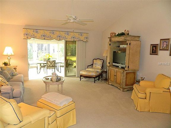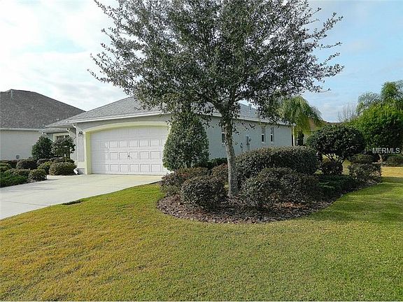 This is a BEAUTIFULLY FURNISHED/TURNKEY block stucco JASMINE in the Village of CAROLINE! Located minutes from Lake Sumter Landing, the Village of Caroline is one of the most sought-after, central Villages' locations! This PRISTINE Designer home has ceramic tile floors in the kitchen, baths and utility room and neutral carpet in the main living areas. The OPEN kitchen features fresh white cabinetry, SOLID SURFACE counters, pull-out drawers in the cabinets and pantry, and a sunny, bay window for the breakfast nook! The open concept living and dining area has sliders which open to the lanai. The master bedroom provides a large walk-in closet, dual-sink vanity and a neutral decor. The opposite side of the home opens to the guest area through a pocket door, and features two spacious guest rooms and a guest bath with a tub/shower combination. The indoor utility room has a laundry tub and provides extra storage space with built in cabinets. The lanai is expanded and has ceramic tile floors, floor- to-ceiling sliding acrylic windows and roll-down solar shades. The lanai enjoys an open view of the beautiful landscaping which surrounds the home. The home has a NEW ROOF with the shingles replaced in October, 2014. Gutters and downspouts were added to the back of the home, A TERMITE BOND is in place, and the irrigation system was recently upgraded. A truly LOVELY home, centrally located, and super convenient to all the dining, shopping and nightly entertainment on the Square in Lake Sumter Landing!