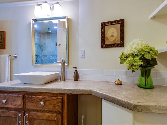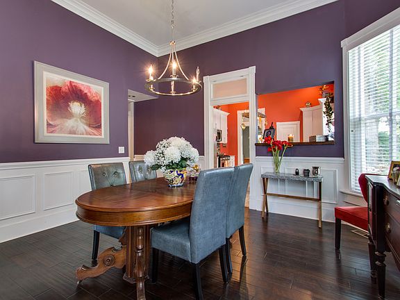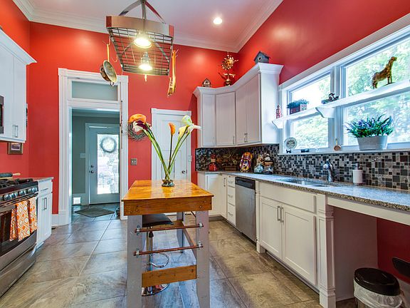 The home is very unique with many beautiful features: 12 ft. ceilings, 14" crown molding, 9ft. oak pocket doors, a lovely parlor entrance, 3 bedrooms (one small), 2 full baths, large kitchen with all appliances included, (stackable washer & drier and wine cooler and two fireplaces (vented gas logs only). The exterior of the home is hardy board.