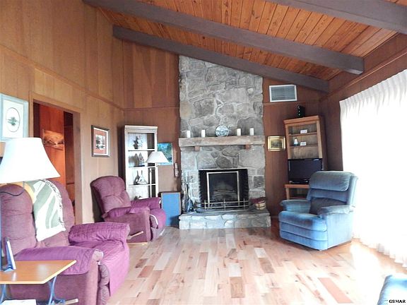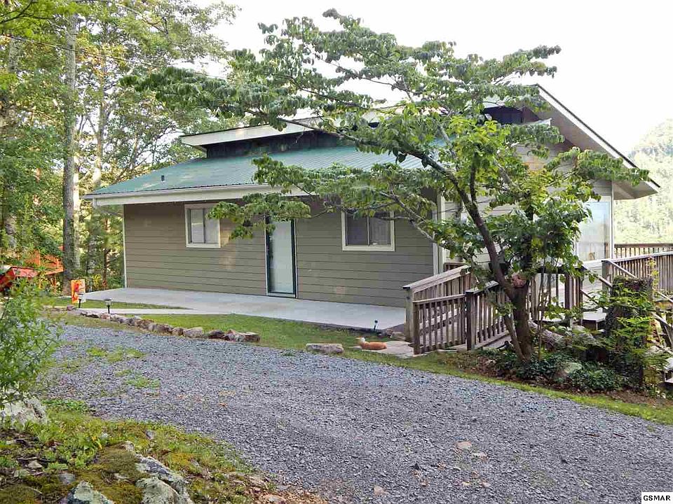 1212 Lakeside CT, Sevierville, TN 37876 is a delightful 2 bedroom, 2 bath get away with a breathtaking, panoramic mountain view nestled on two lots in English Mountain S/D. Beautiful gleaming hardwood floors in main living areas. Newer roof, windows, patio doors, Hardee Plank siding and Heating & Air Unit. Wood-burning fireplace. 2 covered wrap around decks to enjoy the mountain view! Most furniture stays. One bedroom and bathroom on each level. Both bathrooms have been renovated! There is a large Bonus Room on the lower level to entertain or for your guests to enjoy their privacy. The adjoining lot has a turn around and room for additional parking. HOA fee on all 3 lots is $50.00/year. Lot 5 across the street has a 1 bedroom septic installed and is available with the purchase of the home for an additional $10,500.00. Lot 5 will not be sold separately, so and you would own the lots at the end of the road.