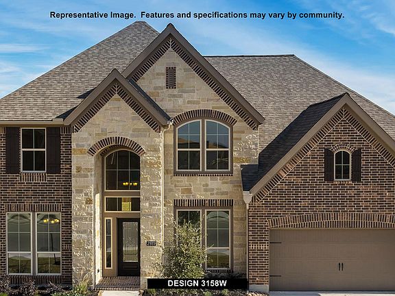 Mahogany front door. Brick and stone elevation. Library with French doors and formal dining room, both with ceramic tile floors. Open kitchen faces the two-story family room with ceramic tile floor and an 18-foot ceiling. Kitchen features island with built-in seating space. Window seat in the morning area. Master suite with dual sinks and two walk-in closets. Additional closets for storage. Oversized utility room. Game room with an adjoining media room located upstairs. Extended covered backyard patio. Three-car garage.