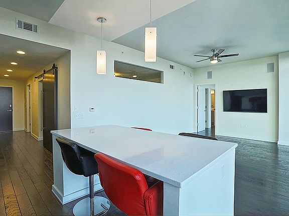 1212 is a Glass-Encased Residential High-Rise. Suite 1907 is a 2-Bed 2-Bath featuring a White Quartz Island & White Carrara Marble back-splash tile in Kitchen. K5 medical water filtering system for drinking/showering/ and salt water carbon filter for appliance longevity. California Closets in Both Bedrooms. Wide Plank dark wood floors, Solar Shades. In Wall/Ceiling Speakers. 2-covered parking spaces. 1-storage unit.