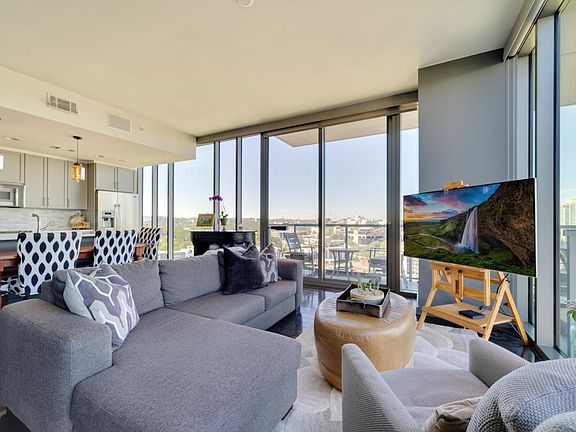 Luxurious high-rise living. 2BD;2BA corner unit. Panoramic DOWNTOWN/MIDTOWN views. (2) Assigned parking spaces, (1) storage unit, floor to ceiling windows, and (2) walk in closets.12;12 features 2 guest suites, salt-water pool, hot tub, green roof, trainer driven fitness center, dog park, & 2 owner lounges.