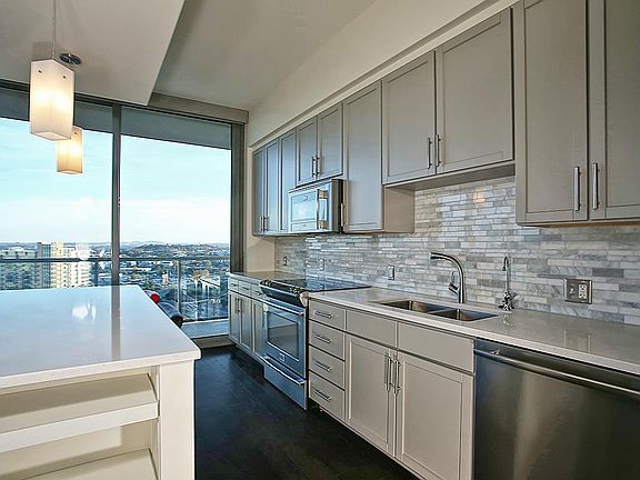 1212 is a Glass-Encased Residential High-Rise located in the Gulch! Suite 1907 is a 2-Bed, 2-Bath, 2-covered parking spaces, 1-storage unit. In the Kitchen White Quartz Island & Countertops w/White Carrara Marble back-splash tile, a K5 medical water filtering system for drinking/showering/ and salt water carbon filter for appliance longevity. In the Living Spaces Wide Plank dark wood floors, Solar Shades, In Wall/Ceiling Speakers. Tall Ceilings California Closets Systems in Both Bedrooms.