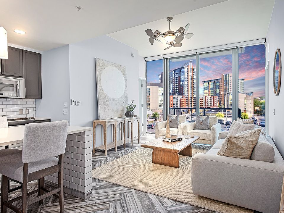 Fully renovated Residence with Gulch and Sunrise views. California Closets in every bedroom. Tankless water heater. 2 assigned parking spaces + 1 storage unit included. Floorplan was originally designed as 2BD|2BA+Den, unit was converted to an optional 3BD layout. 12|12 features 2 guest suites, salt-water pool, hot tub, green roof, trainer driven fitness center, dog park, & 2 owner lounges.