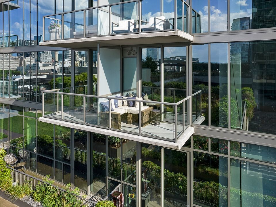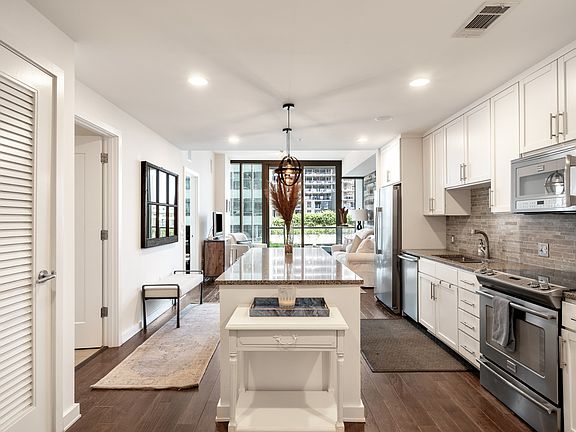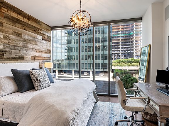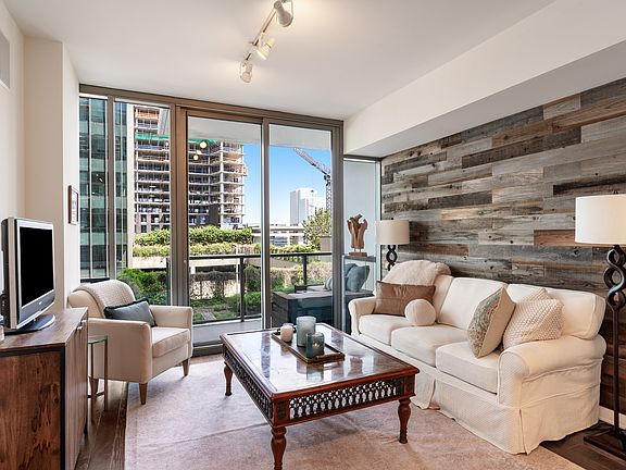 Upscale high-rise living with floor to ceiling windows. Private balcony overlooking the desirable (and unobstructed) garden and skyline views. Fully enclosed primary bedroom. Two custom-built closets. Surround sound. 1 COVERED parking space. Building features: owners lounge, package delivery service, salt-water pool, hot tub, green roof, trainer- driven fitness center, dog park & 2 guest suites for out-of-town guests.