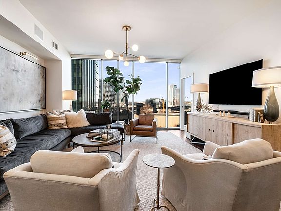 Beautifully Updated UNFURNISHED 2BD + Den | 2BA in Twelve Twelve! Enjoy peaceful downtown views from living space that overlooks the green roof. Den/Media Room with it's own wine fridge converts to a 3d bedroom space | Gas Range | Built-in laundry/pantry closet off kitchen| California Closets Throughout. Unit conveys with 2 Covered Parking Spaces (365 & 361) + Large Storage Unit all located on the 4th Floor. Only floor plan in Twelve Twelve with 3rd bedroom flex space that's not a PH! Building amenities include, 3800sf fitness center, owner's lounge, spa like pool & hot tub, green roof, 4 grilling areas, 4 fire pits, 2 guest suites, bike storage, indoor dog walk and privately fenced dog run. Private Remarks: Unit rents UNFURNISHED with two parking spaces and large storage unit. Photos are of current tenants furnishings. Tenant must go thru orientation and review HOA rules and regulations.