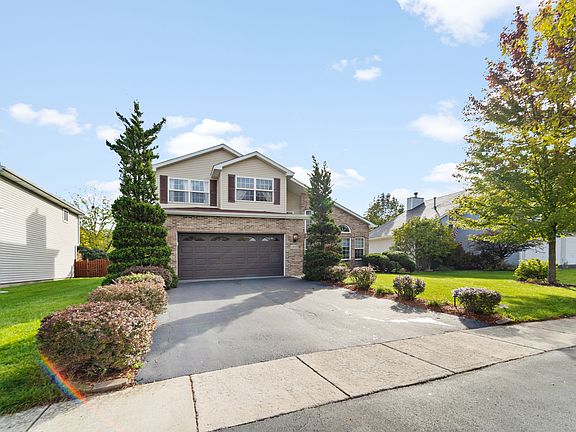 Welcome home to this meticulously maintained 3 bedroom, possible 4 bedroom as the primary bedroom has a large bonus room that can easily converted into another room, 2.1 bath beautiful property offering scenic views from both the front and back. Upon driving up, you will notice that the home is situated directly across the street from a large fishing pond. The backyard also offers no neighbors behind you and backs up to a tree lined property line and a landscaping company to allow you true privacy as you are outside enjoying your beverage of choice on your custom concrete patio with lovely flowers and peach and apple fruit trees. Upon walking in, you will be greeted by an abundance of gleaming natural light and truly that at home feeling of comfort. Take note of the vaulted ceilings and open staircase. There is a main level laundry room with built in shelves, and the updated kitchen offers newer appliances (5 years old), a large eat in kitchen table space area, and overlooks the family room where you will find the cozy brick fireplace. Upstairs find the primary bedroom suite including your bonus room that can easily be converted into the 4th bed, a generously sized walk in closet, and a recently updated (3 years) primary bathroom. The second level also includes two additional bedrooms and another full bath. There is a new whole house water filtration system, new sump pump, upgraded lighting throughout the home, and an attached oversized heated 2.1 car garage.
