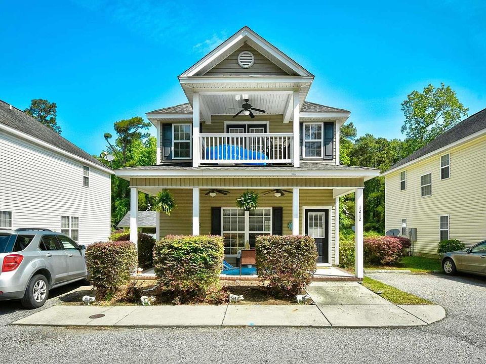 Welcome home to this spacious 3 bedroom, 2.5 bathroom home in Tiffany Ridge. This home includes upgraded flooring throughout the living room, tile in the kitchen and baths, and cozy carpets in each bedroom. The kitchen is equipped with all black appliances, a work island with breakfast bar, a combined dining area and pantry for extra storage. A half bath is located on the first floor for added convenience for guests. Each bedroom upstairs includes a ceiling fan, plenty of closet space, and easy access to a bathroom while the master also features a walk in closet, double sink vanities, and access to a private balcony. Enjoy afternoons on your front porch with two ceiling fans, or relaxing on the balcony upstairs. Several closets throughout allow plenty of extra storage space. Tiffany Ridge is perfectly situated in the heart of Myrtle Beach, close to all of the Grand Strand's finest dining, shopping, golf, and entertainment attractions. Come make this your forever home, schedule your showing today!