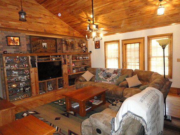 This very special and unique property is a rare find. Brick and Cedar Ranch built by current owner in 2004,containing 1,483 sq.ft., and is accentuated by many special features. It is nestled on 3.705 acres that includes a small pond, 32x48 pole barn, 15 foot lean-to, above ground pool, hard-wired generator, dump station for RV, wood shop, spacious wood deck, and fenced pasture. Secluded setting.