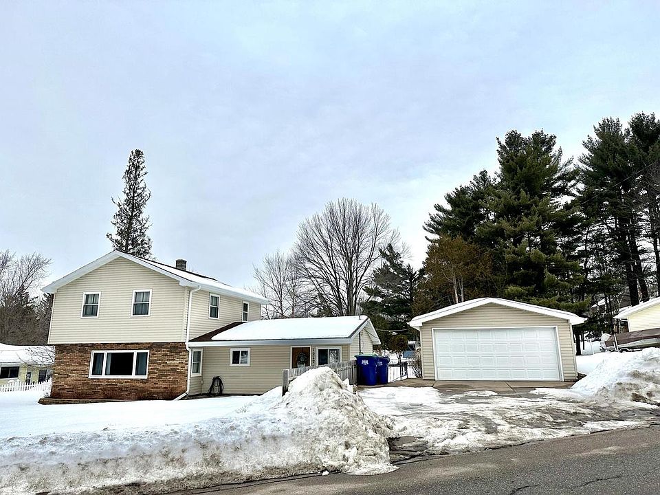 Appealing 4 Bedroom, 2 car garage home in the sought after Riverview Elementary School District. Spacious floor plan that has been tastefully updated throughout. Open kitchen with ample cabinetry and tastefully updated counter tops (appliances included) which is open to the dining area. Mudroom at the front door with large coat closet and sitting area which would make a great office. Main floor laundry with sink and access to the back yard. Massive living room with south facing picture window that brings in lots of natural light and tasteful with great closet space, main floor half bathroom next to a bedroom. Upper level has 3 spacious bedrooms with full bathroom. Basement is unfinished which makes great storage space. Spacious .28 acre lot with covered front patio and back yard patio with storage shed included. Great location near the boat landing & Wisconsin River, Tribute Golf Course, Bunkers Restaurant and Sylvan Hill Park.