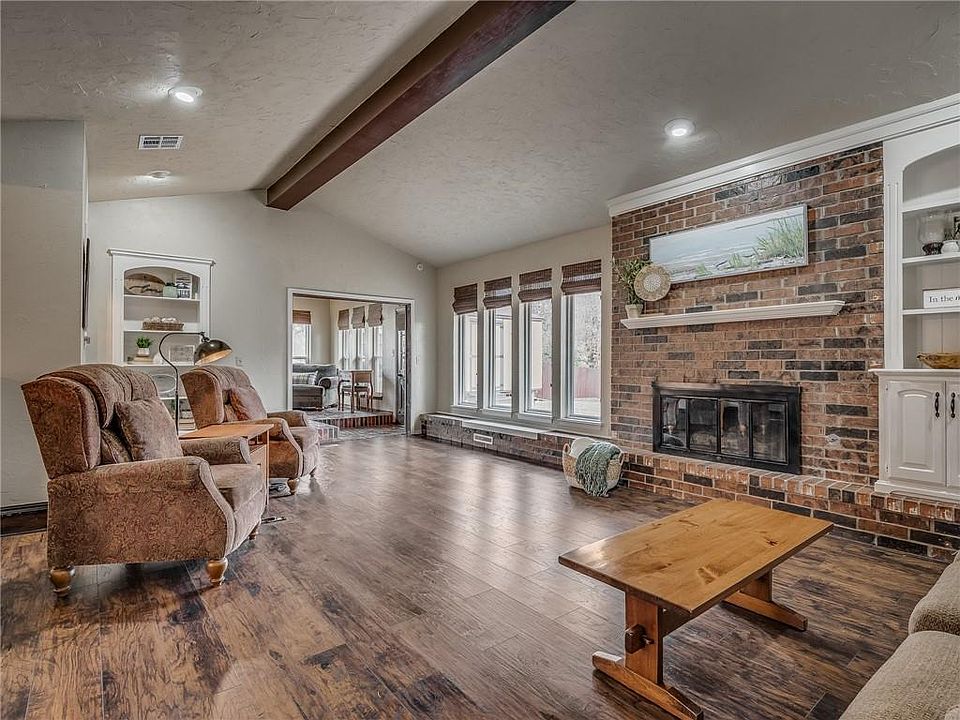 Come fall in love! This beautiful home is located minutes from shopping, restaurants, I-35 & Broadway Extension. It is within walking distance of award-winning Memorial High School, Central Middle School & just a few minutes to the elementary. Located on a cul-de-sac & corner lot, it has mature trees in the front yard, a spacious backyard with a fire pit, and a new garden shed. Improvements include up-flow furnace & overhead HVAC ductwork (2021), roof (Dec 2022) & remodeled bath & hall leading to bonus room (2021). New carpet and paint throughout the home. The living room includes a wood-burning fireplace & custom built-ins. The kitchen has a breakfast nook, gorgeous brick floors, granite countertops, & stainless steel appliances. Spacious master with his & her closets, double vanities, & walk-in shower. The 2nd living area is perfect for a bonus room or could function as a 4th bedroom. Please see the attachment for an extensive list of improvements & repairs.
