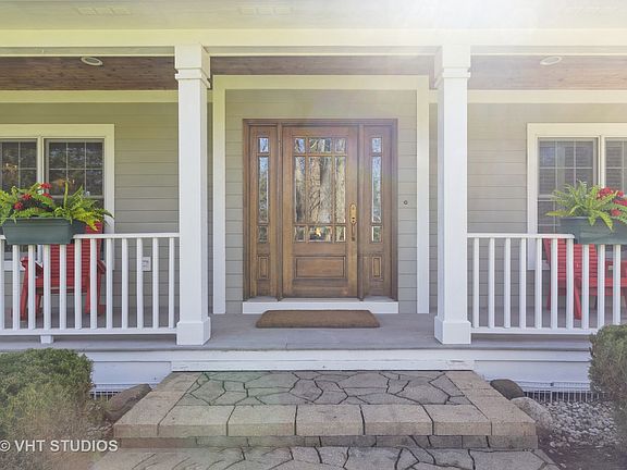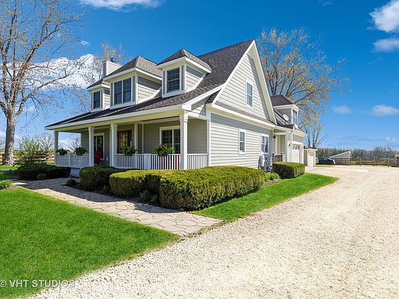 TRULY A PIECE OF HEAVEN ON 10 BEAUTIFUL ROLLING ACRES... this equine property has been so well designed by one who was passionate about their horses and dogs. There is a 7 stall barn with individual paddocks with automatic waterers, a frost free hydrant by the barn, running hot water all year, run-in shed, intercom system with speaker to the barn, heated tack room with radiant heated floor, and heated wash stall, grain room, four interior stalls are hardwired with fans, fans available in remaining stalls, fans are also installed in lean-to's. There are 7 acres of pasture, a sacrifice pasture,with arena lights in one pasture, and professionally installed fencing throughout the property. One pasture is used for growing your own hay which can be stored in the hay barn. There is even a ramp for easy removal of waste to the dumpster, to keep the stalls clean. This Estate features a Modern Farmhouse built with Hardie Board Siding, and a Trex front porch. Consists of 3 bedrooms and a bonus room that would make a huge Master Suite with exceptional views of the farm and countryside. This home built in 2006,boasts with quality construction and shows like new. Custom Cherry Cabinets, Corian Counter tops and ceramic Italian tile flooring in the kitchen, bathrooms and laundry room, The LR/GR comes with arched walls and tray ceiling along with a wood burning fireplace for those cozy nights. Hardwood Floors in the LR/GR, all bedrooms, hallway and foyer, and a whole house fan on the second floor,. Laundry room comes equipped with Corian countertops,cherry wood cabinets, built in desk, washer and dryer a shower surround for dogs, a doggie door that leads to a dog kennel with radiant heated floor which also leads to a fenced in yard for dogs to play. There is also a see- thru pocket door between the kitchen and laundry room so the dogs can see everything and yet aren't into everything There is a full basement with radiant heated floors, roughed in for another bath, Utility room, newer furnace, sump pumps, well pump, hot water heater, water softener (Rented) etc., and high ceilings waiting to be finished! There are two 2-car garages, with the attached garage having radiant heated floor. There is also a Generac Generator to the home and barn for those unexpected power outages. Zoned AG for lower taxes! There are so many features, you must see to appreciate!