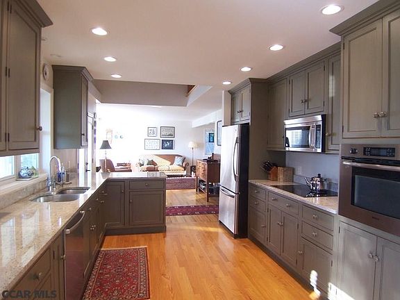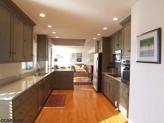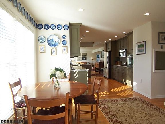 Tucked at the end of a peaceful cul de sac this lovingly-maintained gem offers pretty views of Mt. Nittany, Tussey Mountain & Centre Hills Golf Course. You'll find a welcomed feel of hospitality and spacious sun-filled living areas. Highlights include hardwood floors, skylights, solid doors, French doors, two staircases and more. Value a nicely outfitted eat-in kitchen with handsome granite countertops, stainless appliances, pantry & convenient grocery lift. Residents love the relaxing sunroom featuring vaulted ceilings & heated floor for year-round enjoyment. A spacious dining area currently serves as a family room. Enjoy the warmth of a fireplace in the living room providing deck access and walls of pretty windows. The main floor also offers a bedroom (currently serving as an office) & full bath. The upper level has a generous master suite with full bath and a Jr. suite with private bath--both with steam showers. Lovely fenced back yard adjoins the golf course.