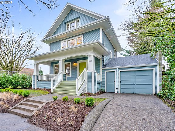 Step into this enchanting foursquare home with abundant charm and character in the heart of Portland's desirable historic Irvington neighborhood. Charm exudes from the moment you step onto the inviting front porch. Inside, discover a home that has been thoughtfully updated while preserving its historic character. Hardwood floors grace the main level, leading you through the expansive living spaces. The living room, adorned with a fireplace, offers a cozy retreat, while the adjacent dining room beckons for gatherings, and the large kitchen (new SS fridge & dw not in photos) opens to the backyard and is ready for your personal touch. Upstairs, you'll find three bedrooms, each offering a peaceful retreat at the end of the day and an expansive top floor family room provides a fabulous escape from the hustle and bustle of daily life. Rejuvenation lighting & carpentry. With a rare oversized attached garage and full sun backyard the possibilities are endless! 100 bike score