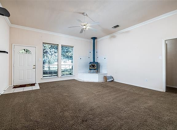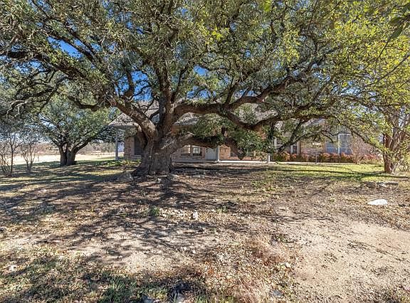 20 Acres of wonderful Country Living, yet close to city conveniences. 3 Bedroom, 2 Bath home offers large living area with wood burning stove for cold winter nights. Bright kitchen opens up to dining, as well as breakfast area, that could also be office. Master is split from other 2 bedrooms. 2 car garage is oversized with plenty of room for a work bench or extra storage. Outside of city limits and currently Ag exempt. Century old oak tree canopies over front yard. Several groups of trees, as well as a Pecan orchard. Property has Electric Entry Gate, Workshop, RV Storage, Storage Shed, Open Pole Barn, 2 Large Storage Containers, Open Hay Barn, Loafing Shed, Seasonal Tank and Well. This is your piece of Texas!