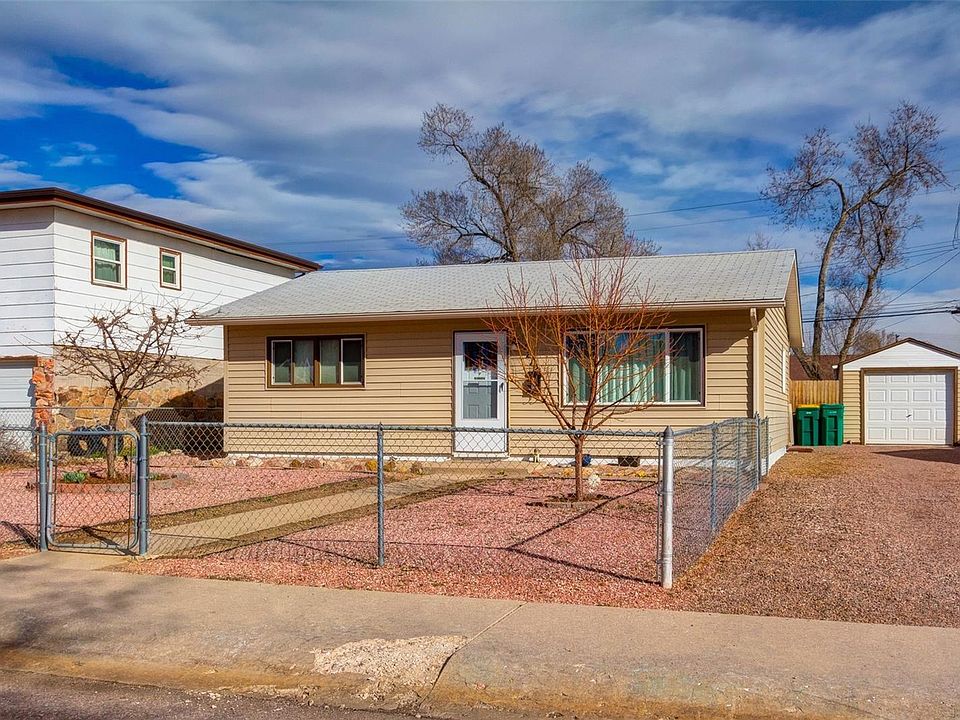 Charming two-bedroom ranch style home on .15 acres with peach and plum trees, tremendous fenced and pet-friendly yard, and stunning Front Range views! A living area with large picture windows, eat-in kitchen with stainless steel appliances, spacious bedrooms, beautifully updated full hall bath, detached garage with built-ins, RV parking, low maintenance landscaping, rear paver stone patio, and an oversized yard with views and plenty of space for entertaining and family play all showcase this sunlight-filled home. Near shopping and schools, this home is ideal for a homeowner or investor for rental income. Don't miss this gem!