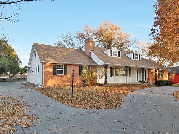 Bring on the memories! Make them here! Beautiful setting with mature shade trees, circle drive, side load garage, huge backyard /fully fenced, covered patio, newer roof, close to half an acre. Exterior is low maintenance brick and vinyl siding. Lovely neighborhood. The interior has all of the space you would ever need! 3 fireplaces, formal living room, main floor family room, formal dining room, remodeled kitchen with two pantries, eating area, island and all appliances. Main floor laundry. Master suite includes full bath with double sinks, walk in closet and room enough for a sitting area! 2nd bedroom has a full wall of built ins and would make a nice office as well. 3rd and 4th bedrooms on the second floor with full bath. Attic space on both sides for even more finished square foot possibilities. Full basement with large rec room, wet bar and fireplace. Full bath. CRAZY storage space! The location is excellent with access to highway, grocery, YMCA, hospital and more in just blocks.