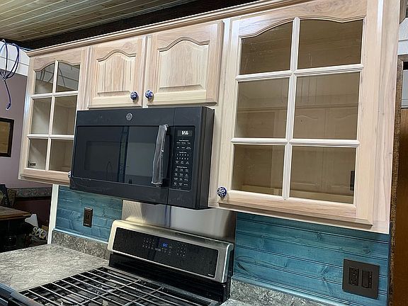 Recently remodeled/updated kitchen with custom (not prefab) cabinets. Vaulted ceiling in LR/DR/Kitchen tongue & groove natural spruce.