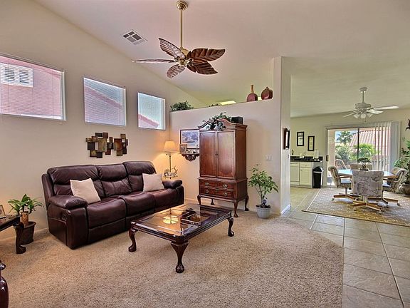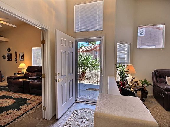 This meticulously maintained town home located in the desirable resort like community of Sunset Greens with mature, manicured grounds boasts a private, maintenance free back yard with a relaxing water feature to enjoy a view of the Virgin mountains and the fabulous Mesquite weather. The kitchen has beautiful cabinets and granite countertops, an R/O system and tile floor. The glass storm door allows light into the open living area with vaulted ceilings. The master bedroom is large and you can get lost in the master closet. Residents enjoy discount on golf at Casablanca Golf Course, 2 pools, hot tubs, and RV parking is available. Located in a perfect area for the lifestyle you are looking for, golfing, hiking, atving or just relaxing in your own backyard, this home has it all.