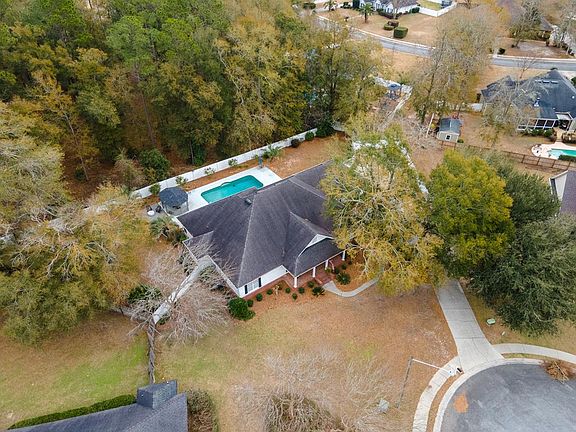 STUNNING 4 bedroom/3.5 bathroom home in desirable Cherry Creek Hills! Situated on a spacious half acre lot in a quiet cut-de-sac, you'll love relaxing by the in-ground pool! Open concept kitchen, dining, and great room- perfect for entertaining guests or spending time with family. Kitchen boasts custom cabinetry, stainless still appliances, step up island w/ bar seating, bar sink, and plenty of counter/prep space. Great room features 12 ft ceilings, fireplace, and beautiful built in shelving and cabinetry. Primary suite includes his and hers vanities, walk in shower, and jacuzzi tub. Oversized spare bedrooms- plenty of space for kids or guests of all ages. Bonus room at the front of the home would make the perfect home office, workout room, man cave, or flex space. Additional formal dining room is ready to host your family and friends. Gorgeous cherry wood floors and tile throughout the entire home- no carpet. Laundry room equipped with utility sink and folding table. Large covered front patio w/ swing, screened back patio, or gazebo offer multiple locations to enjoy this hidden gem! Two car garage, privacy fenced, storage shed, and new seamless gutters. Located minutes from Publix, Aldi, SGMC, Moody AFB, shopping, and restaurants.