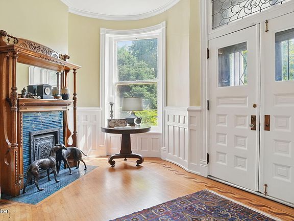 What an amazing opportunity in Old Louisville where Old World Charm & Modern Conveniences are melded together seamlessly. This magnificent property offers over 4657 Sq. Ft of living space in the main house which offers 2 First floor bedrooms and a full bath, there is a newer brick carriage house offering a 3-car garage plus a deluxe 1000+ Sq. Ft. 1-bedroom apartment w/laundry, a heated saltwater fiberglass 4 ½' deep inground pool, outdoor shower, a private bathroom for pool users on the 1st floor of the carriage house, an outdoor fireplace, a hot tub & a built in grilling station. The grand façade is gorgeous with a single two-story round bay. This home offers so many options, a wonderful single-family home with full guest quarters on the 3rd floor or in the carriage house (both with full kitchens), option to rent one or both spaces, potential Airbnb opportunity for an owner occupant. Upon entering the elegant foyer through the double doors with leaded glass transom you will love the 1st floor round bay sitting area with gorgeous original fireplace, quarter sawn inlaid oak flooring. Original pocked doors are in place between the foyer and formal front parlor and the parlor to the banquet size dining room. The dining room has a wonderful built-in wet bar with glass face cabinetry, granite top and a hammered copper sink. Behind the dining room is the family room with cast iron mantel, which is totally open to the wonderful fully equipped kitchen with exposed brick, quartz countertops with hex tile backsplash, a large center island, a Zline gas range and a planning desk. Behind this area are 2 bedrooms with a newly updated full bath (a rarity in Old Louisville). Up the grand natural oak staircase with stunning stained-glass window to the 2nd floor where you will find a huge primary suite with private bath (claw foot tub and shower), water closet, walk-in closet, a dressing room with island and laundry. On this floor you will find the round room which is perfect for a home office or reading room. There is also another large bedroom on this floor with a full bath with tub/shower combination off the hallway. Up to the 3rd floor, where you will find a full apartment with living room (could be used as the 6th bedroom in main house), a bedroom, an eat-in kitchen and a newly renovated full bathroom with tub/shower combination. This apartment has a separate side entry utilizing the original rear staircase for access. The rear staircase could be opened back up to the main house on the 2nd floor very easily if desired. Don't forget the living quarters above the brick 3-car garage as well for additional living space, Airbnb, guest quarters or rental income. This home has wonderful curb appeal and gorgeous grounds. Tall ceilings, oak & pine flooring, incredible inlays in some of the rooms, 11 original fireplaces, pocket doors & beautiful millwork are all reminiscent of the 19th century construction (circa 1890). Water/Sewer average $155/mo. LG&E average $771/mo. (5 separate meters for main house/3rd floor apt./carriage house apt.).