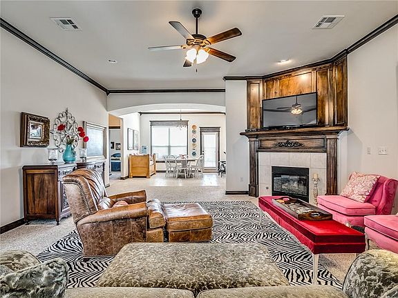 Tucked away in the quiet Cobblestone Creek Golf Course addition, this immaculate 3 bed, 2.5 bath home boasts an open floorplan, wood floors and a bay window in the study, an enormous master suite with double vanities and whirlpool tub, gorgeous stained woodwork throughout the home, upgraded garden tub and shower in secondary bath, and a covered patio space perfect for entertaining. Built in 2014, features include crown molding and archways throughout the living spaces, detailed designs in the woodwork around windows and doors, an open kitchen with granite counters and breakfast bar, tons of cabinet space in kitchen for storage, a pantry, a spacious dining area, an office that could be a 4th bedroom, and a 3-car garage, all on a terrific corner lot. Neighborhood amenities include clubhouse, swimming pool, biking trails, and a par-3 golf course. This home has great access to OU, and is only a few minutes away from I-35. Call for your showing today!