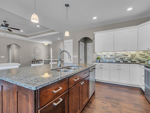 LOCATION, LOCATION, LOCATION! THIS LUXURY CUSTOM-BUILT HOME WAS CRAFTED BY THE AWARD-WINNING DREAM BUILDERS OF IOWA AND IS LOCATED ON A CUL-DE-SAC WITHIN WALKING DISTANCE OF LOWE PARK AND HUNTERS RIDGE GOLF COURSE. THIS SPACIOUS OPEN FLOORPLAN HAS A CUSTOM KITCHEN WITH WHITE CABINETS, GRANITE COUNTERTOPS, OVERSIZED ISLAND. MAIN FLOOR HAS 9 FOOT CEILINGS, ENGINEERED WOOD FLOORS, GREATROOM WITH A FLOOR TO CEILING STONE FIREPLACE WITH BUILT-INS, CUSTOM TRAY CEILING, AND OVERSIZED WINDOWS. THE FOUR SEASONS ROOM HAS A SLIDING DOOR THAT EXPANDS ENTERTAINING TO A HUGE MAINTENANCE FREE DECK. THE MAIN BEDROOM HAS A CUSTOM TRAY CEILING, LARGE WALKIN CLOSET, DUAL VANITY SINKS AND A CUSTOM TILE SHOWER. MAIN LEVEL LAUNDRY WITH DROP ZONE. WALKOUT LOWER LEVEL IS VERY OPEN WITH 9 FOOT CEILINGS, FULLSIZE WETBAR WITH GRANITE COUNTERTOP, CUSTOM STONE WALL WITH FLOATING SHELVES. ZONE HEATING, CENTRAL VAC, PRE-WIRED FOR SOUND AND SECURITY. OVER-SIZED HEATED THREE STALL GARAGE WITH 13 FOOT CEILING, WIRED WITH A 220VOLT 60AMP SUBPANEL. THE FENCED BACKYARD HAS AN EXTRA-LARGE PATIO, CUSTOM FIREPIT, 11x16 MAINTENANCE-FREE SHED/WORKSHOP. DON’T MISS OUT ON THIS HARD TO FIND PROPERTY!