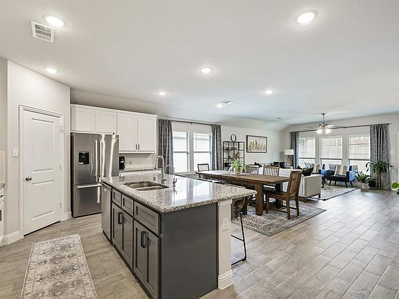 Shows like a model and this home is in immaculate condition! Four-bedroom, move in ready home in the popular Anna Town Square community nestled in Anna. Walk to daycare, elementary and middle schools. Just down the street from the community pool, park and playground. This home is ready to welcome you to its large OPEN FLOOR PLAN with a beautifully appointed kitchen with white cabinets and modern touches. Large dining area and spacious family room with gas fireplace. Features include beautiful tile floors that flow from the entry throughout the kitchen, dining, and living areas, with granite countertops, stainless steel appliances, handsome wood cabinets, a beautifully appointed primary suite with double sink vanity and plenty of storage space, granite countertops, and an oversized shower. The outdoor delights include a wonderful, large covered patio, wood fence, and spacious yard. Just minutes to 75 for a quick commute. Home includes whole house water filtration system! Renter pays all utilities, renters insurance is required. Owner provides supplies for water filtration system. Includes fridge, washer & dryer.