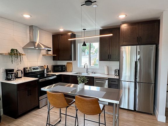 NEWLY BUILT FULLY FURNISHED APARTMENTS that are like a hotel room but nicer with a full kitchen for the equivalent of $87/night! 1 bedroom / 1 bath with modern finishes, designed with traveling professionals in mind. Includes a fully equipped kitchen, stainless steel appliances, quartz countertops, tiled shower with bathtub, modern heating and cooling system, full sized washer/dryer in each apartment and tasteful mid century modern furnishings. Large screen smart TV includes a long list of channels, highly rated new queen mattresses and crisp white linens. This 3rd floor unit (top floor) has beautiful views of the snow capped Lassen Volcanic mountain range from several of your windows and from your own private porch. Ideal for traveling nurses and locum physicians with a short 6 minute walk (0.3 mile) to Shasta Regional Medical Center, 5 minute walk to Shasta Community Health Center, or a 4 minute drive (1.3 miles) to Mercy Medical Center. Enjoy the vibrant core of Downtown Redding with incredible walkability from your front door to the Downtown Public Market, Evergreen Coffee, Roots Juice Bar, Blade & Barrel, Taste & See Creamery, Final Draft Brewing, Cinders Wood Fired Pizza and the Cascade Theatre.