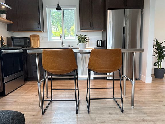 Full kitchenModern finishesFully furnished apartmentsCrisp white linensPrivate porchLarge screen smart tvQuartz countertops