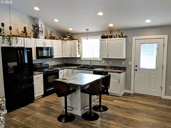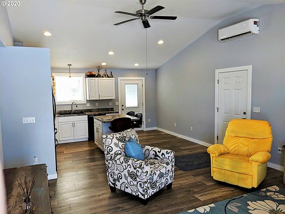 This 2017-built home has everything! An open floor plan kitchen and great room leads to two sizable bedrooms including a master suite. Everything about this house is modern - from energy efficient lighting, heating and appliances, to plenty of closet and cabinet space. The large backyard includes a covered back porch. The attached 'tandem' garage can fit two cars. Vinyl siding and a metal roof all on a good foundation has set this house up for a long life. Call Today!