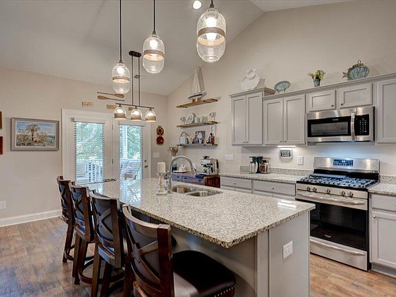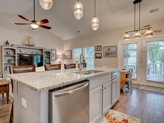Experience coastal living with this beautifully crafted Ellsworth floorplan by Schumacher Homes, built in 2019. Designed as a dream retreat for its owner, this home offers a tranquil escape with breathtaking views of Simpson Creek on James Island. From the comfort of your own outdoor living space, watch the tides ebb and flow, while the vibrant landscape changes with the passing sun and the gentle breezes off the tidal creek. This inviting single-level residence features a spacious, private primary suite complete with a separate glass/tile shower and soaking tub, ensuring a serene and relaxing environment. The open-concept living area is accentuated by vaulted ceilings in the living room and kitchen, with 9-foot ceilings throughout the rest of the home, creating an airy and light-filledatmosphere. Entertain or unwind on the back porch, where a cozy fireplace awaits to warm up those cool fall evenings. The home's modern kitchen and stylish bathrooms offer contemporary amenities and elegant finishes, making this property both functional and beautiful. With no HOA restrictions, you can bring your boat and fully embrace the island lifestyle. Zoned for the award-winning Harborview Elementary, this home is conveniently located near restaurants, grocery stores, churches, athletic fields, and schools. Enjoy easy access to Historic Downtown Charleston, Folly Beach, and multiple public parks, including Sunrise Park on Charleston Harbor. Don't miss your chance to own this exceptional waterfront sanctuary. Contact us today to schedule a viewing and discover the serene beauty and modern comforts this home has to offer!