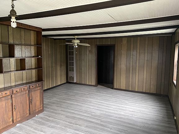 - Features Interior: Ceiling Fan, Paneling, Wood Stove