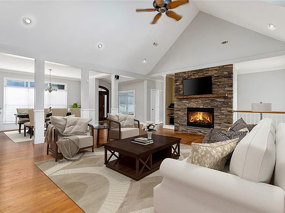 - Tray Ceiling(s), Ceiling Fan(s), Cathedral Ceiling(s), Dual Sinks, Fireplace, Granite Counters, Garden Tub/Roman Tub, High Ceilings, Jetted Tub, Bath in Primary Bedroom, Main Level Primary, Pull Down Attic Stairs, Smooth Ceilings, Separate Shower, Cable TV, Unfinished Walls, Vaulted Ceiling(s), Walk-In Closet(s), Walk-In Shower, Window Treatments, Breakfast Area