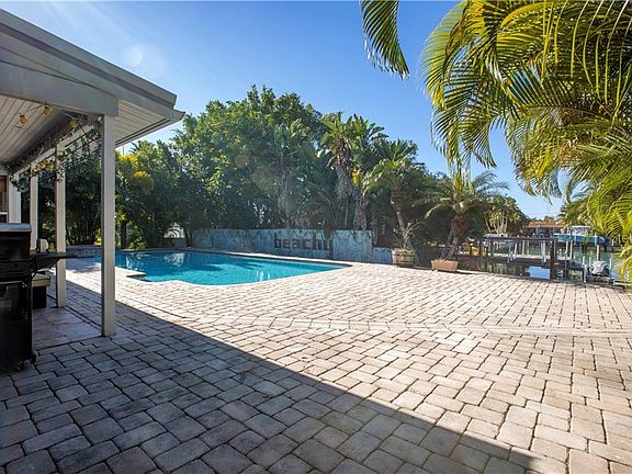 This beautiful, updated home features 3 bedrooms, 2 baths, 2 car oversized garage & pool w/2256 Ht. Sq. Ft. Spacious open floor, split bedroom plan w/vaulted clgs and skylights. The recently updated kitchen w/new back splash, solid counter tops featuring lots of working counter space, stainless steel appliances, new cooktop, new refrigerator, new sink, a large pantry & dual ovens perfect for all year around entertaining. The bonus room can be used as an office/den w/authentic Mexican Saltillo tile & overlooks your private oasis. The master suite also overlooking your private oasis is Huge w/hardwood floors, crown molding & a large walk-in She closet. Master Bath boasts granite counter tops, dual sinks, deep soaking tub & large walk-in shower. The guest bath has been updated w/granite counters & cabinets. Your Oasis awaits you out back, complete w/covered lanai, large newly resurfaced deep water pool & spa, new pool pump, cooking area for a grill. Dock features include davits for a small boat or personal watercraft. Dock can be extended in length a couple of feet w/a permit from the City of TI. New high end, high impact sliding glass doors that include a Teflon Mesh for covering them during nasty weather. New remote control solar blinds inside. New A/C in 2019. Water softener. The garage has lots of room for extra storage or a work bench. This home is a short distance from Rosselli Park w/ball field, tennis courts, playground and New Dog Park. Isle of Capri is an outstanding waterfront community to live.