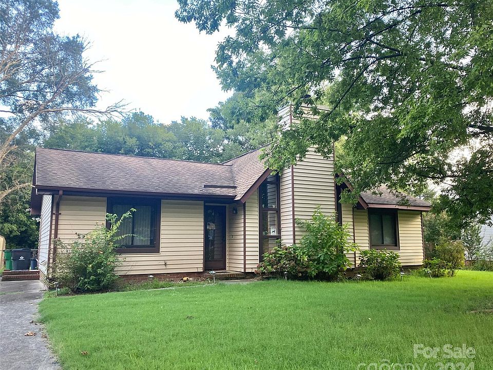 **Multiple offers, please submit highest and best by 3pm tomorrow 8/3/24**Investor special! This home has so much potential! Convenient to I485, this split 3 bedroom/2bath ranch on a level lot with beautiful trees is your next best investment. Cathedral ceiling in den/dining room gives this home a spacious and open feel. The beautiful fireplace has rustic appeal with the rock hearth and wood wall boards. Primary bedroom has walk-in closet and ensuite bath. The dining room has a sliding back door that opens to a concrete patio inside the fenced back yard. The Leonard utility building in the backyard does convey. Also, there's a utility room on the back of the house with additional space for storage. Refrigerator conveys. Please note that there is currently no water utilities turned on because of suspected water leak in primary bath per seller. Home is being sold as-is and reduced price reflects that status.