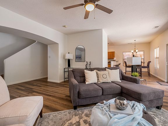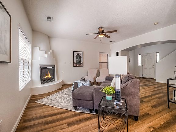 HOME WARRANTY! NO PID! This charming 2-story Raylee home in Volterra boasts a spacious floor plan with freshly painted interior, 3 bedrooms and 2.5 baths plus a bonus 15x15 loft can be additional living, learning, home gym or office. The roomy kitchen has updated refrigerator and dishwasher with ample counter space & breakfast bar. Classy kiva fireplace with gas log insert graces the main living, while updated LVP covers the main level. Recently added tankless water heater, too! The Volterra community offers a picturesque foothills setting with parks, trails, and a welcoming atmosphere. Commute effortlessly to Sandia Nat'l Labs and Kirtland Air Force Base, as both are just a short drive away. See MORE