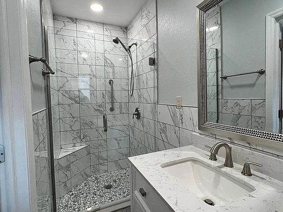 Granite counter topNewly renovated interiorsCeiling fansTile flooringNew kitchen cabinetsStainless steel appliancesWalk-in closet